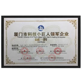 2019年以来、FinehopeはXiamen Science and Technology Little Giantのリーディングカンパニーに選ばれています。この証明書は、アモイ市政府の 5 つの部門が共同で発行したものです。選択基準は、新世代の情報技術、ハイエンド機器、新素材、新エネルギー、生物学と新薬、省エネと環境保護、海洋ハイテクなどの戦略的新興産業に焦点を当てています。この栄誉を獲得したことは、Finehope が新しい情報技術と新しい材料において業界の最前線にいることを示しています。 |